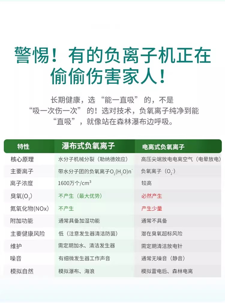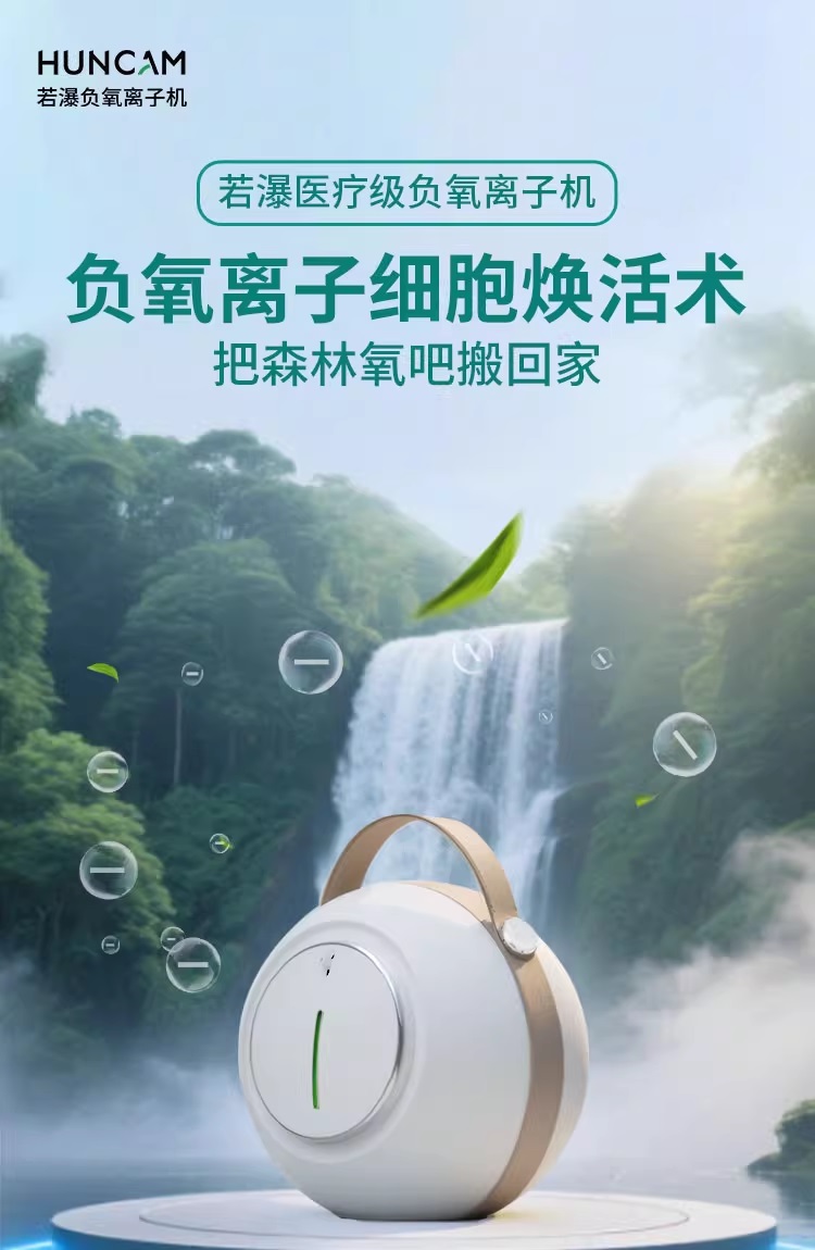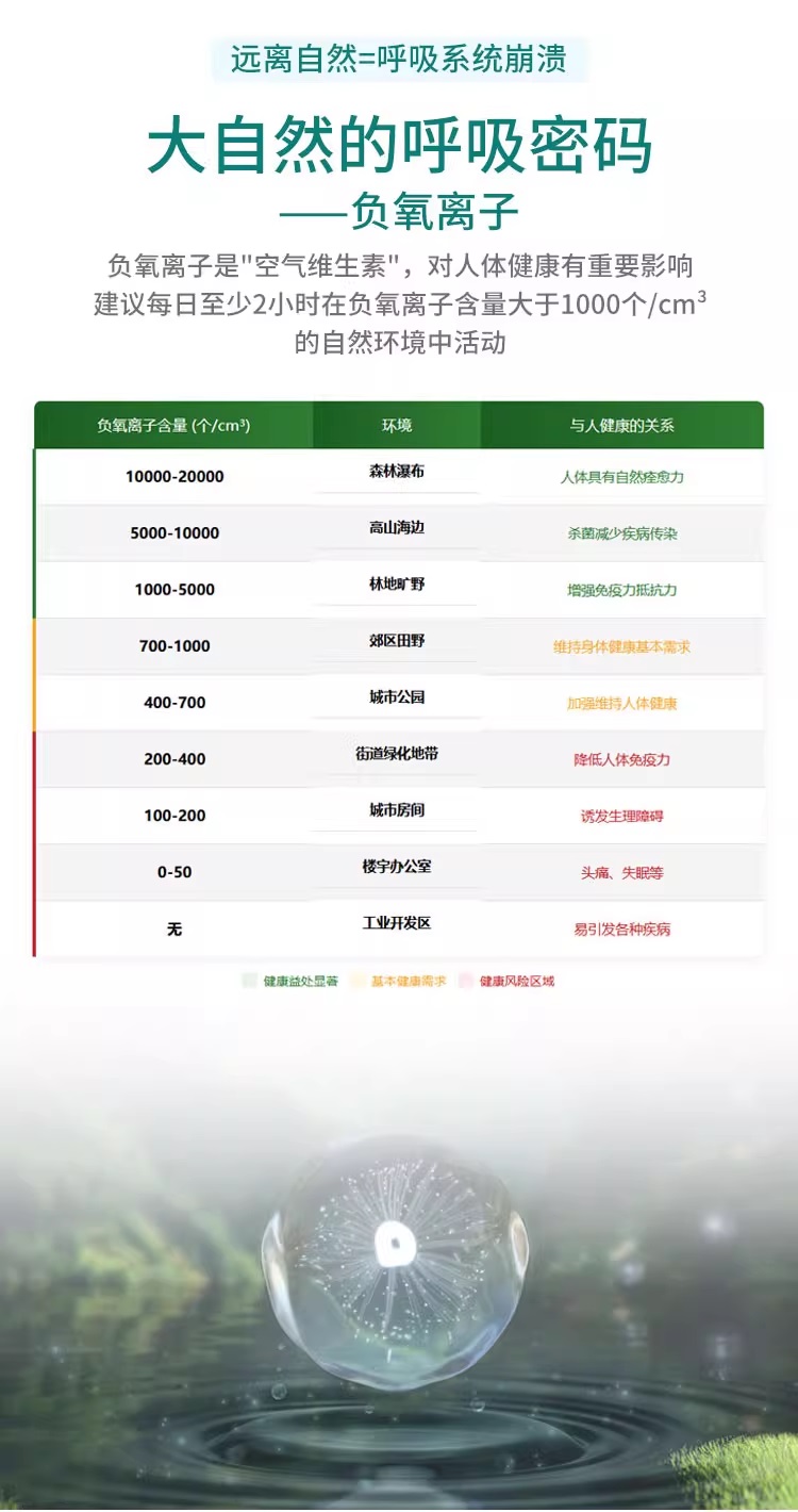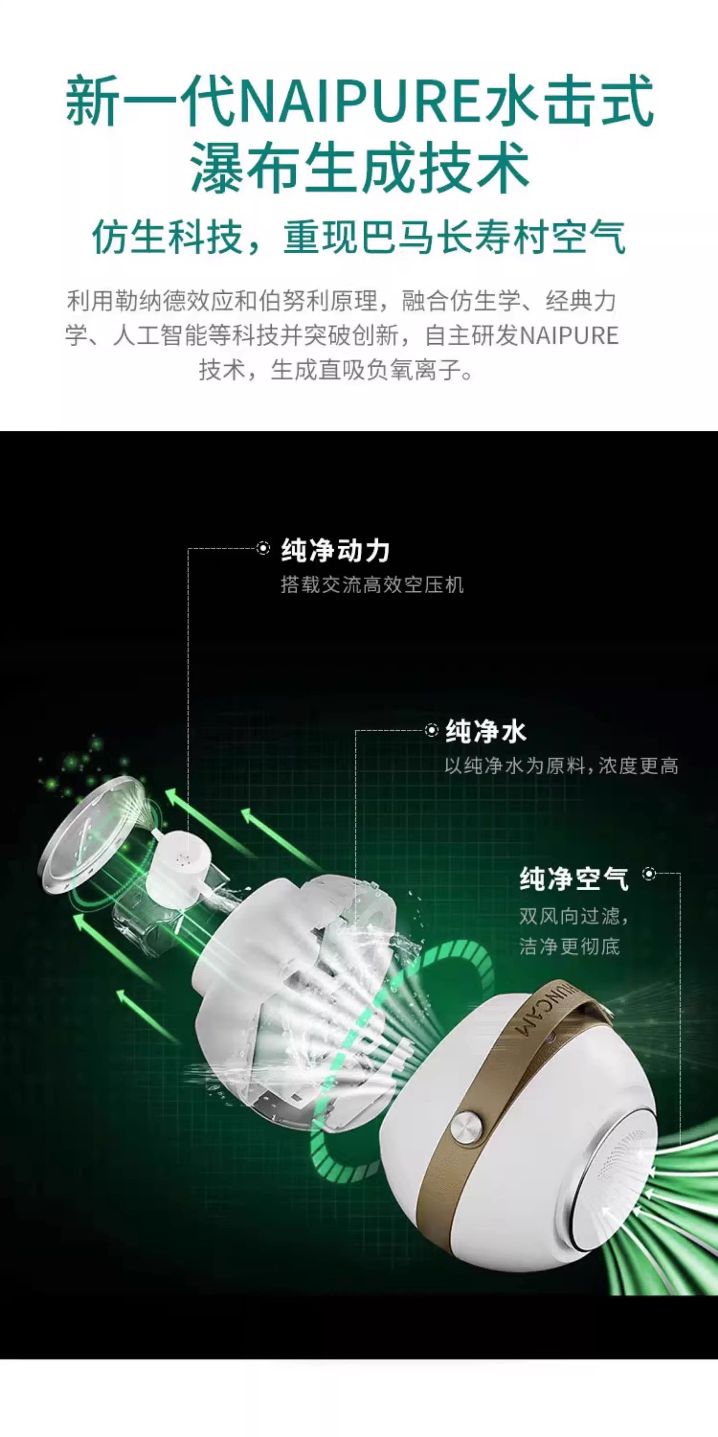 负氧离子机可输出浓度高达200万/立方厘米的可直吸负氧离子,